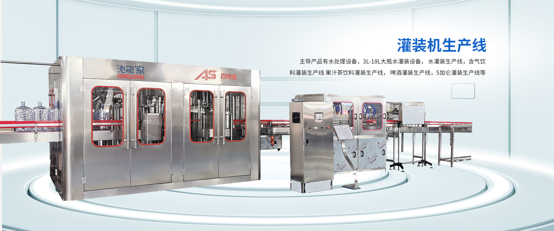 公司主導(dǎo)產(chǎn)品有水處理設(shè)備,3L-18L大瓶水灌裝機(jī)設(shè)備, 水灌裝生產(chǎn)線,含氣飲料灌裝生產(chǎn)線, 果汁茶飲料灌裝生產(chǎn)線, 啤酒灌裝生產(chǎn)線,5加侖灌裝生產(chǎn)線等。